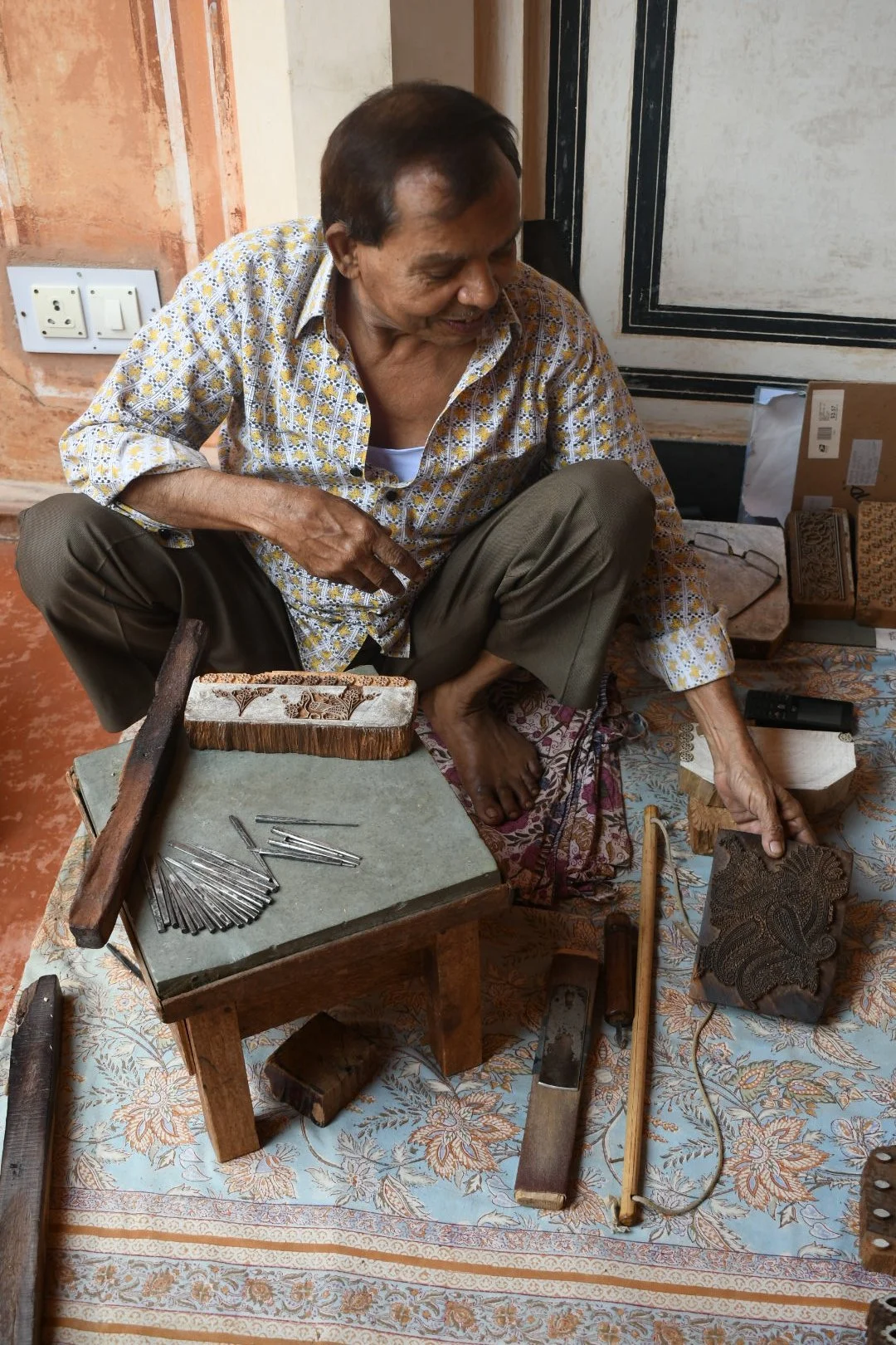 Today starts our four day block printing intensive workshop. We start in Jaipur, spending the day working alongside the master block carvers of the traditional Kharaudi community at their studio.